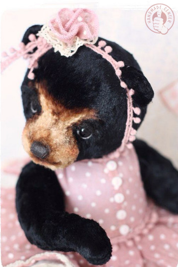 Мишка Тедди - девочка по имени Ляля изготовлена руками мастера из винтажного плюша. В качестве набивки использованы опилки и гранулят. Креплением выступают шплинты в количестве шести штук.