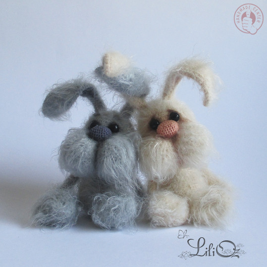 пасхальный зайчик Хрустик связан крючком из фактурной пряжи ростом 14 см сидя 11 см