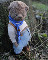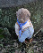 Игрушка набита металлическим гранулятом и опилками. Одежда также выполнена вручную, после чего состарена и специально тонирована.
