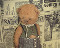 Игрушка держится на шплинтах, а голова закреплена двойным соединением. Вся одежка выполнена из хлопка, а потом специально состарена и тонирована. Одежду можно снимать.
