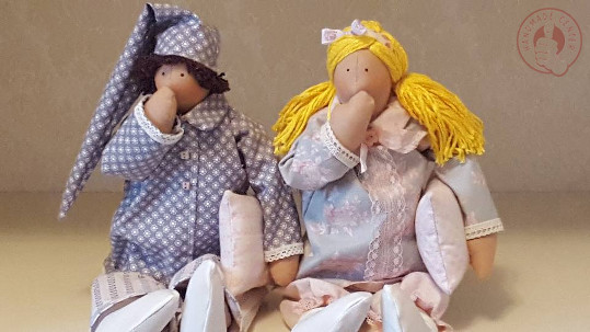 Сплюшка это распространенная вариация тильды. Ее делают в виде забавного зевающего ангелочка. Ее атрибуты мягкая подушка, пижама и длинный колпак.