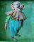 Жюля можно потрогать и пошевелить, так как у него подвижные ручки. Одежка в виде комбинезона пошита также вручную из хлопчатобумажной ткани, после чего расписана специальными акриловыми красками.
