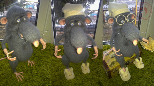 старый крыс, любитель прочесть что-нибудь перед сном, связан крючком из натуральной пряжи, на проволочном каркасе, все конечности подвижны, наполнитель холофайбер, рост 28 см без колпака, книга, очки, спальный колпак и тапки с собой