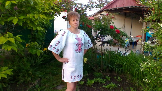 Платье лён. Вышивка машинная.