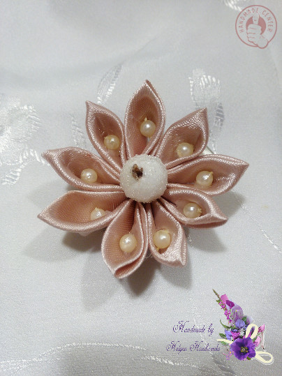 Нежная бежевая заколка в технике канзаши, цена за одну единицу. Замечательно смотрится в любой прическе.