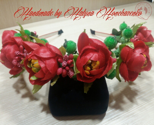 Красный и нарядный ободок из ранункулюс для ярких девушек!